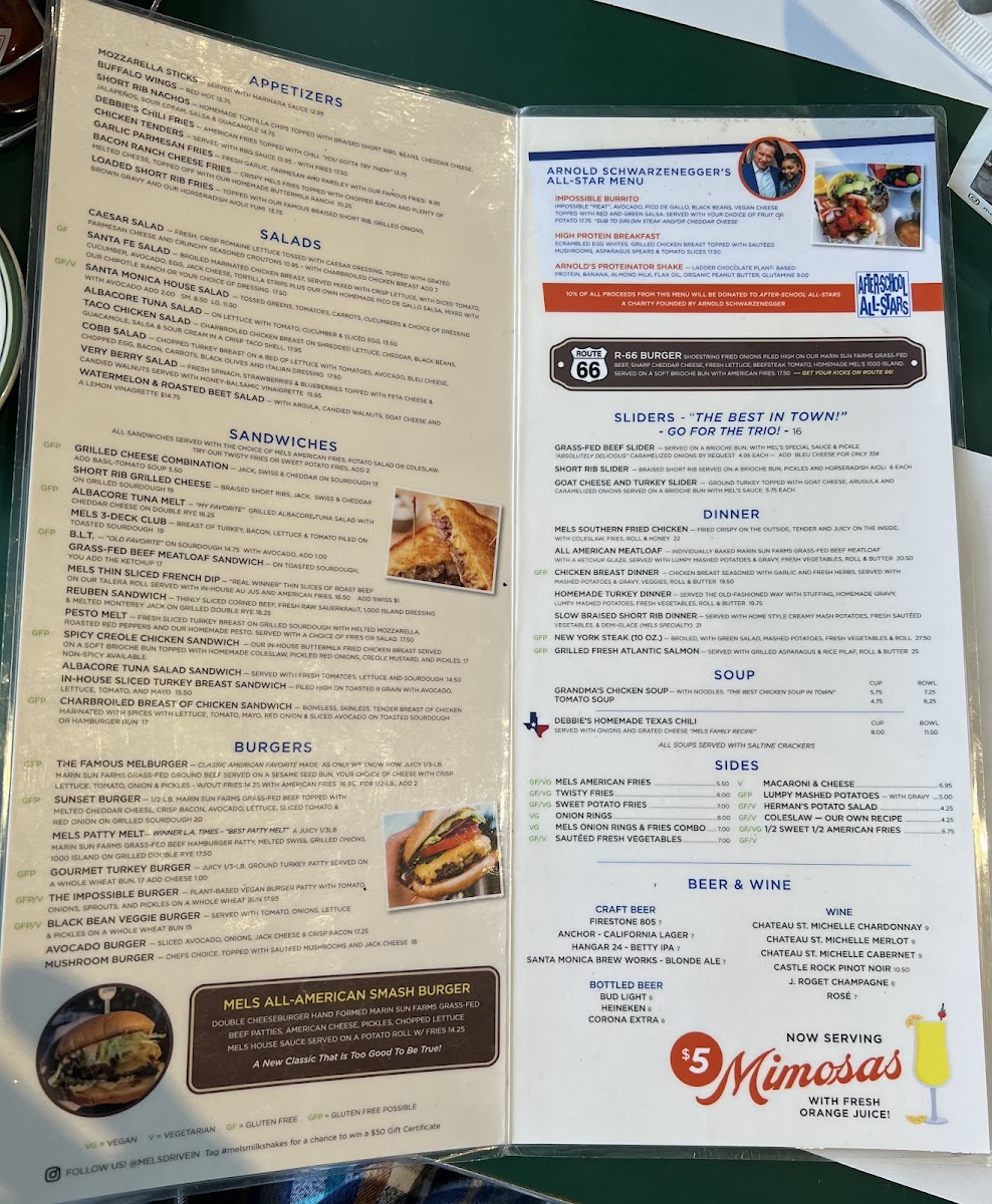 At Mels Drive-In, the menu is a nostalgic celebration of classic American diner fare with a modern twist. Whether you're in the mood for a juicy burger, crispy fries, or a milkshake that takes you back in time, you'll find something to satisfy every craving. Start off with their signature burgers, which are made with premium beef and topped with all the right fixings, from melted cheese to tangy pickles. Don’t miss the hand-cut fries - they’re the perfect side to your meal. If you’re feeling adventurous, dive into their fresh salads or the mouthwatering sandwiches. And of course, Mels Drive-In Menu wouldn't be complete without their famous shakes, which come in a variety of delicious flavors, perfect for cooling off or indulging in a sweet treat. Each dish is crafted to bring you comfort and joy, all served in a vibrant, retro setting that makes every visit memorable. Whether you’re a regular or a first-timer, Mels Drive-In guarantees a dining experience that's full of flavor and fun.